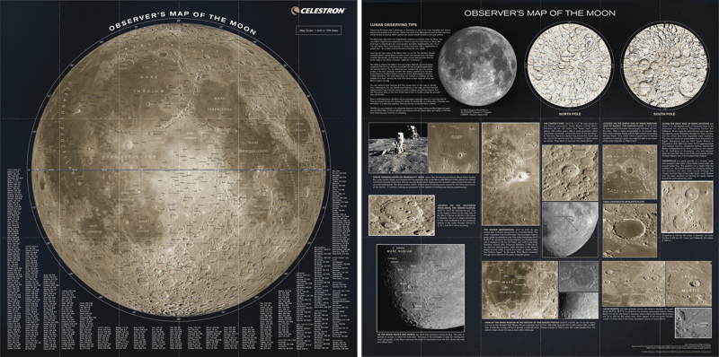 Månekortet vil være en stilfuld, dekorativ plakat på din væg, når du ikke bruger kortet. Det er fremragende at vise frem for din klasse eller astronomiklub. Du vil udforske månen igen og igen, uanset om du er nybegynder eller erfaren amatørastronom. Lad The Observer’s Map of the Moon være din guide.