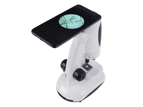 Et lille batteridrevet (3 stk. AA ej inkl.) mobiltelefon mikroskop, der giver dig mulighed for at undersøge genstande med din smartphones kamera.