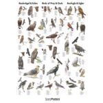 Plakat med 35 af de mest almindelige rovfugle og ugler i Europa.