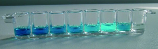 Gennem successive fortyndinger skaber eleverne et standardinterval og kan også måle antistofkoncentrationen af en ukendt opløsning.