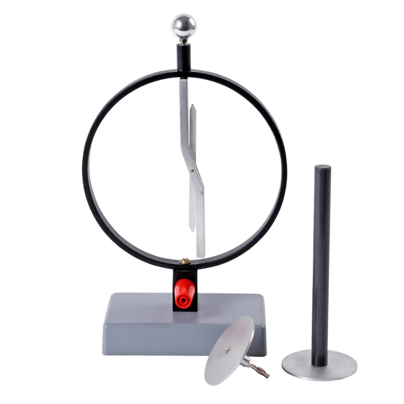Hold en elektrisk ladet stav mod kuglen på elektroskopet og se viseren slå ud. Jo større ladning, jo større effekt. Elektroskopet kan således bruges at vise, at ladninger frastøder hinanden. Elektroskopet leveres inklusive en kondensatorplade og en kondensatorplade på en plaststang.