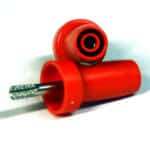 Denne adapter gør det muligt at benytte apparater, der ikke er forsynet med sikkerhedsbøsninger, sammen med sikkerhedskabler.