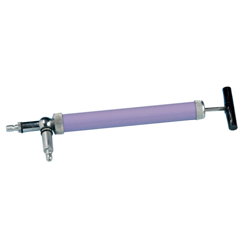 Praktisk håndpumpe med to dyser, et for overtryk og et for undertryk.