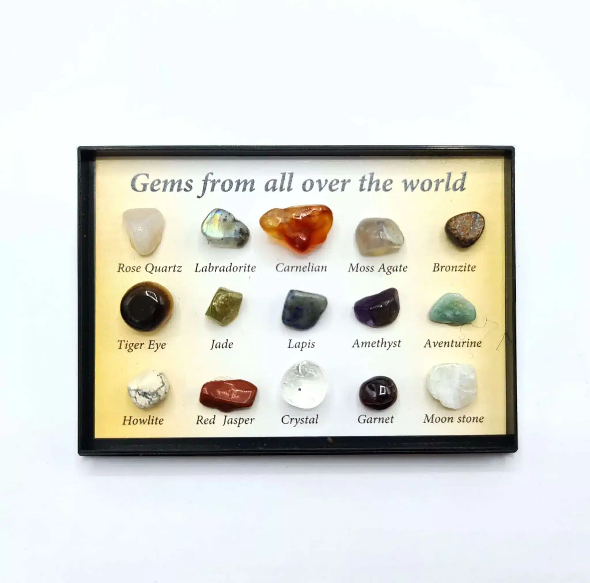 15 krystaller og ædelsten i lille display