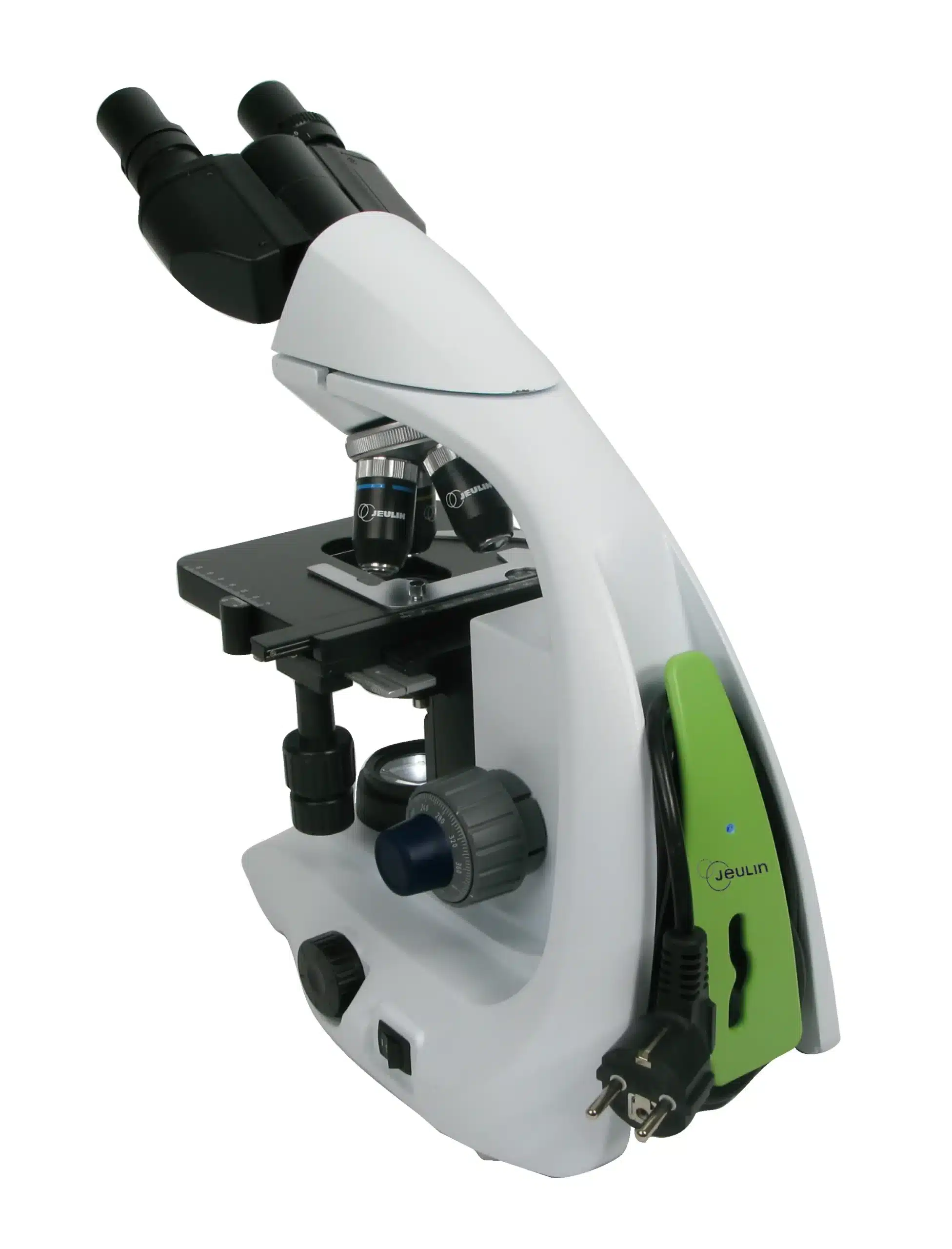 Formen på Mikroskopet og dets unikke design beskytter betjeningselementerne mod skader. 180° hovedrotation begrænser rod og letter opbevaring. Det giver også et let greb fra toppen af stativet.
