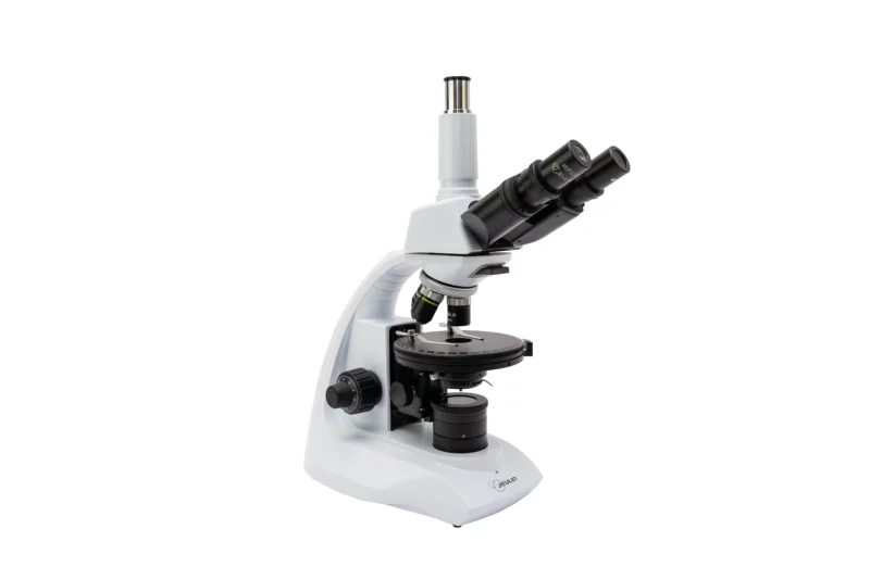 Sætter du pris på dette mikroskop? Det er fantastisk, for sammen med disse udviklinger bevarer DELio alle sine tekniske egenskaber, der gør det til det, det er (og hvorfor vi elsker det så meget). Som ethvert polariserende mikroskop er det udstyret med et rundt roterende og gradueret bord (udstyret med 2 klips). Fuldt konfigurerbar, du kan vælge den ønskede type hoved (monokulær, duo, binokulær, trinokulær, med integreret kamera), okularer (x10 med eller uden peger, x15 med eller uden peger), objektivernes kvalitet (akromatisk, semiplan eller plan) samt objektivernes forstørrelse (4x, 10x, 40x, 60x, 100x olieimmersion). Hvis du ikke finder den konfiguration, der passer til dig på denne side, kan du kontakte vores salgsafdeling, som vil give dig et pristilbud baseret på dine behov. Dette mikroskop har et kabelhåndteringssystem placeret på bagsiden af mikroskopet, et genopladeligt batteri til brug uden at være tilsluttet en stikkontakt, et beskyttelsesstop til at beskytte dine mikroskopiske præparater, en forcentreret og højdejusterbar kondensor, et tårn orienteret mod bagsiden, der kan rumme op til 4 objektiver, og et koaksialt fokuseringssystem. Alt dette er samlet omkring et solidt og stabilt støbejernsstativ.