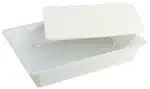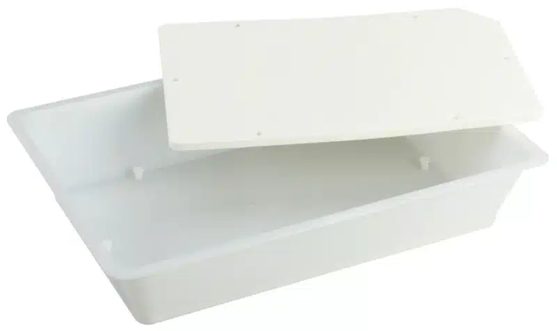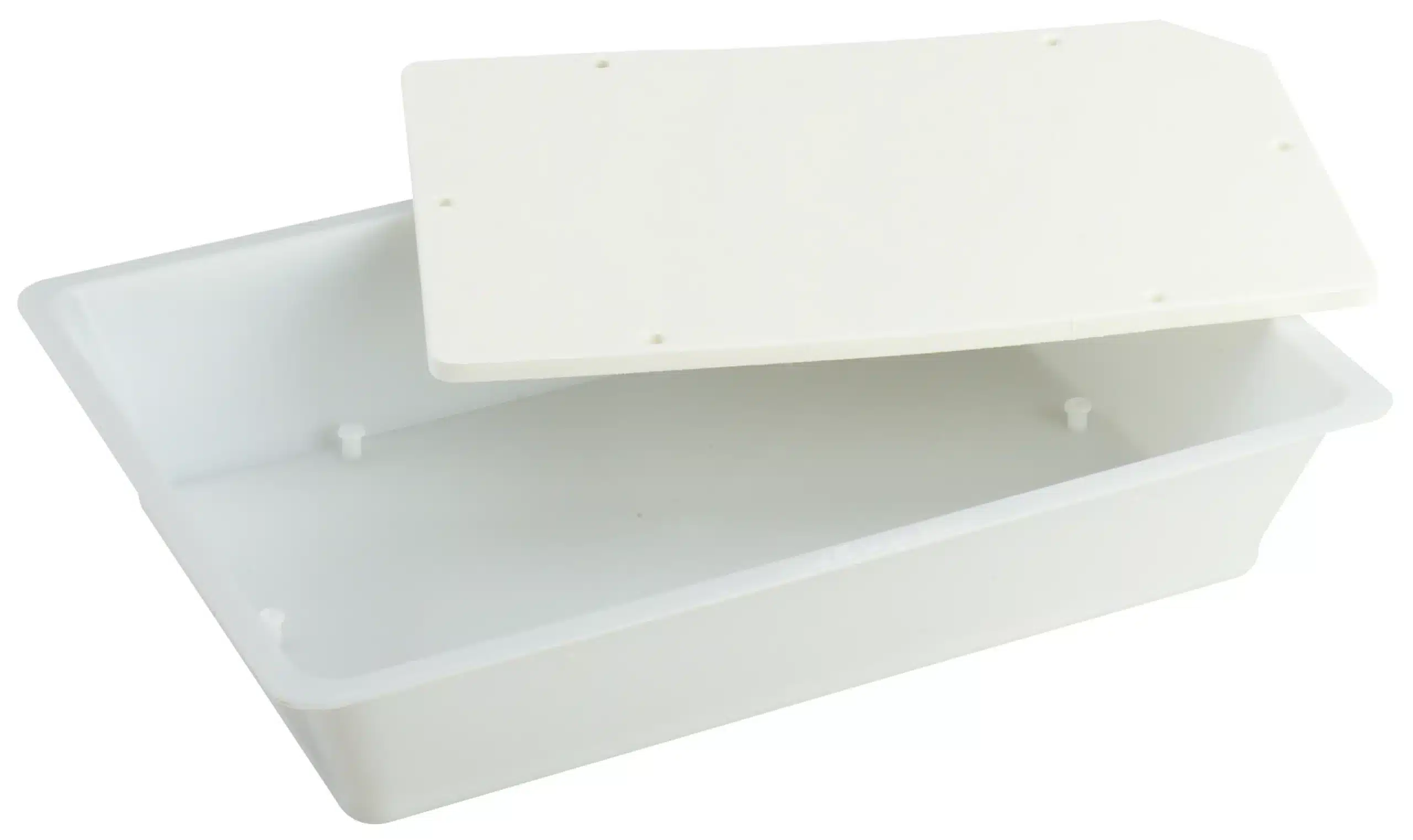 Dissektionsskål i PP-plast, stiv, autoklaverbar, modstandsdygtig over for kemiske angreb og stød, især muliggør transport af skålen fyldt med vand.