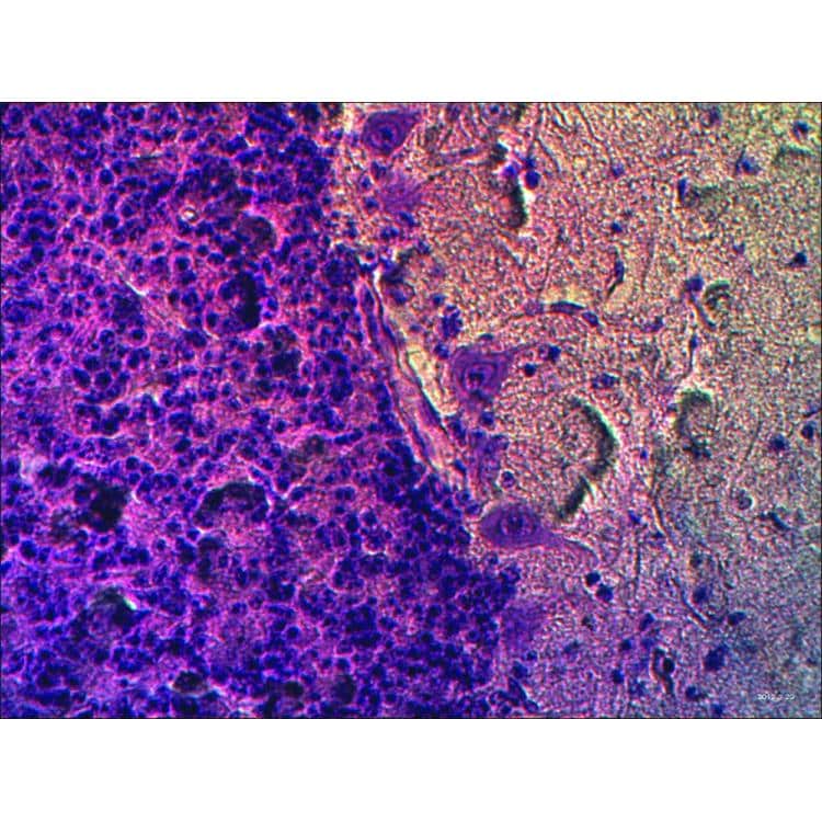 Unipolære neuroner i lille hjerne med afskåret rotte, der viser Purkinje-celler og neurofibriller