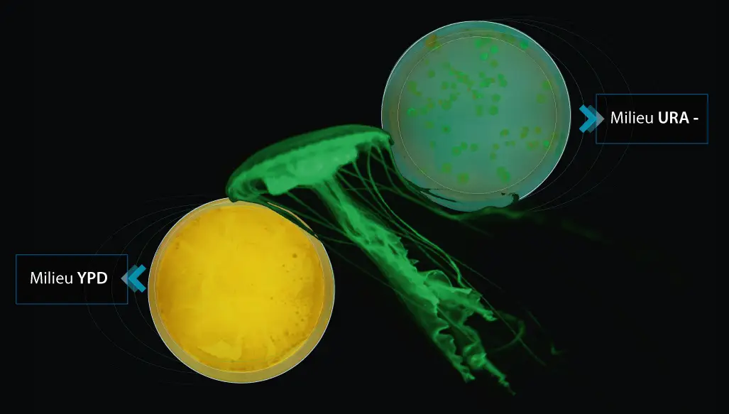 Dette sæt tilbyder en ny, meget forenklet protokol, der gør det muligt at udføre genoverførsel mellem arter. Ved transgenese vil genet, der koder for det fluorescerende protein fra vandmændenes bioluminescerende væv, blive udtrykt af gæren S. cerevisiae.