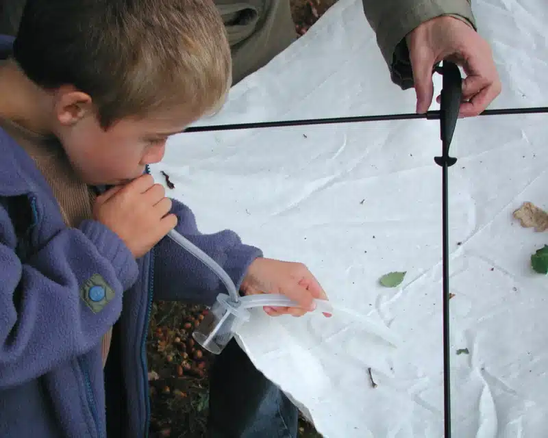 Du skal blot ramme grenene for at få insekterne til at falde ned i paraplynettet. Dyrene er let synlige på lyslærredet og samles derefter omhyggeligt (f.eks. med en insektstøvsuger) for at blive observeret.