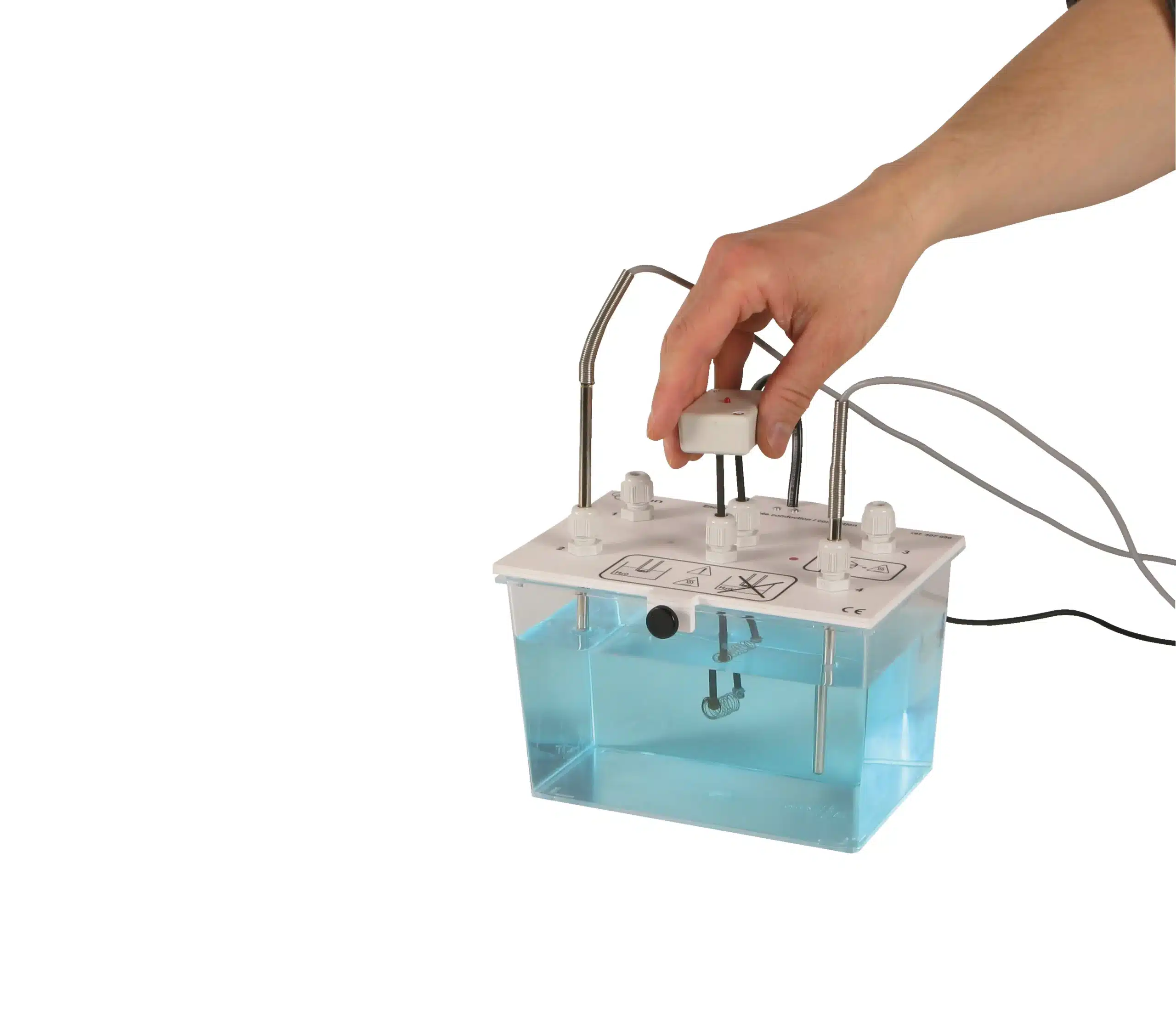 Takket være lågets fastgørelsessystemer kan nedsænkningsdybden af varmelegemet og T° Ex A O-sonderne justeres præcist uafhængigt. Dette gør det nemt at studere konvektion eller ledning og måle udviklingen af temperaturen i kammeret som funktion af dybden i hvert enkelt tilfælde.
