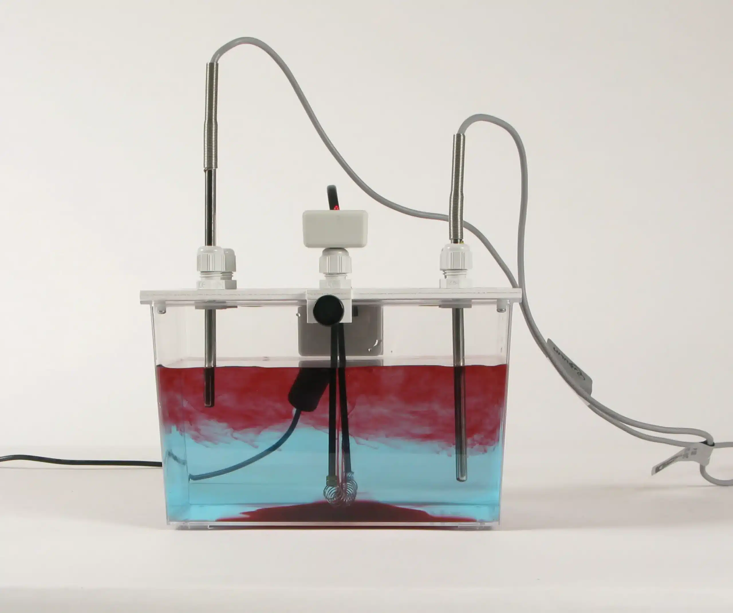Ved at indføre et par dråber farvestof i kammeret kan eleverne observere væskens bevægelser, der genereres af det undersøgte fænomen.