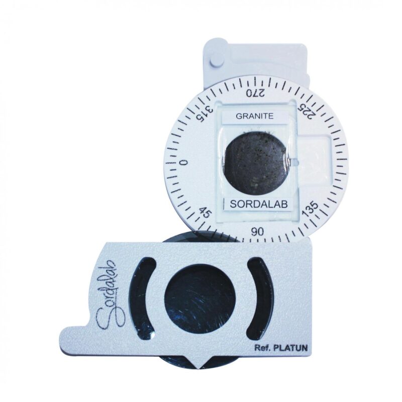 Ved at dreje den graduerede skive vil eleven være i stand til at lokalisere ekstinktionsvinklen for hvert observeret mineral og dermed identificere