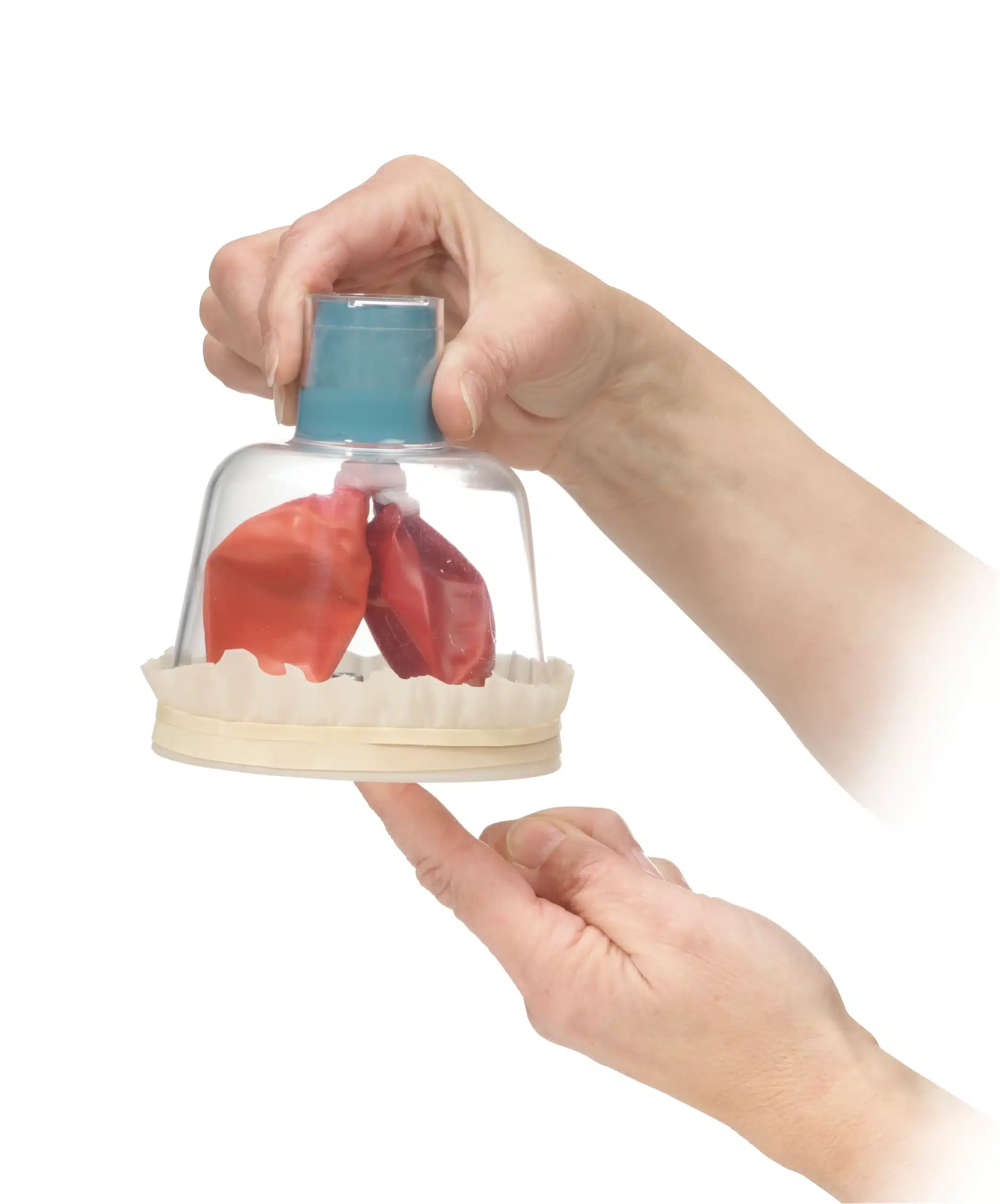 Denne model repræsenterer mekanismen for pulmonal ventilation: luft kommer ind i lungerne, når diafragmaet, ved at trække sig sammen, øger volumenet af brystkassen.