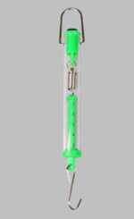 Måleren er udformet i grønt plast,og måleområdet er 0-5 Newton.