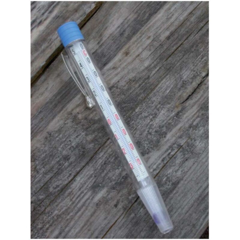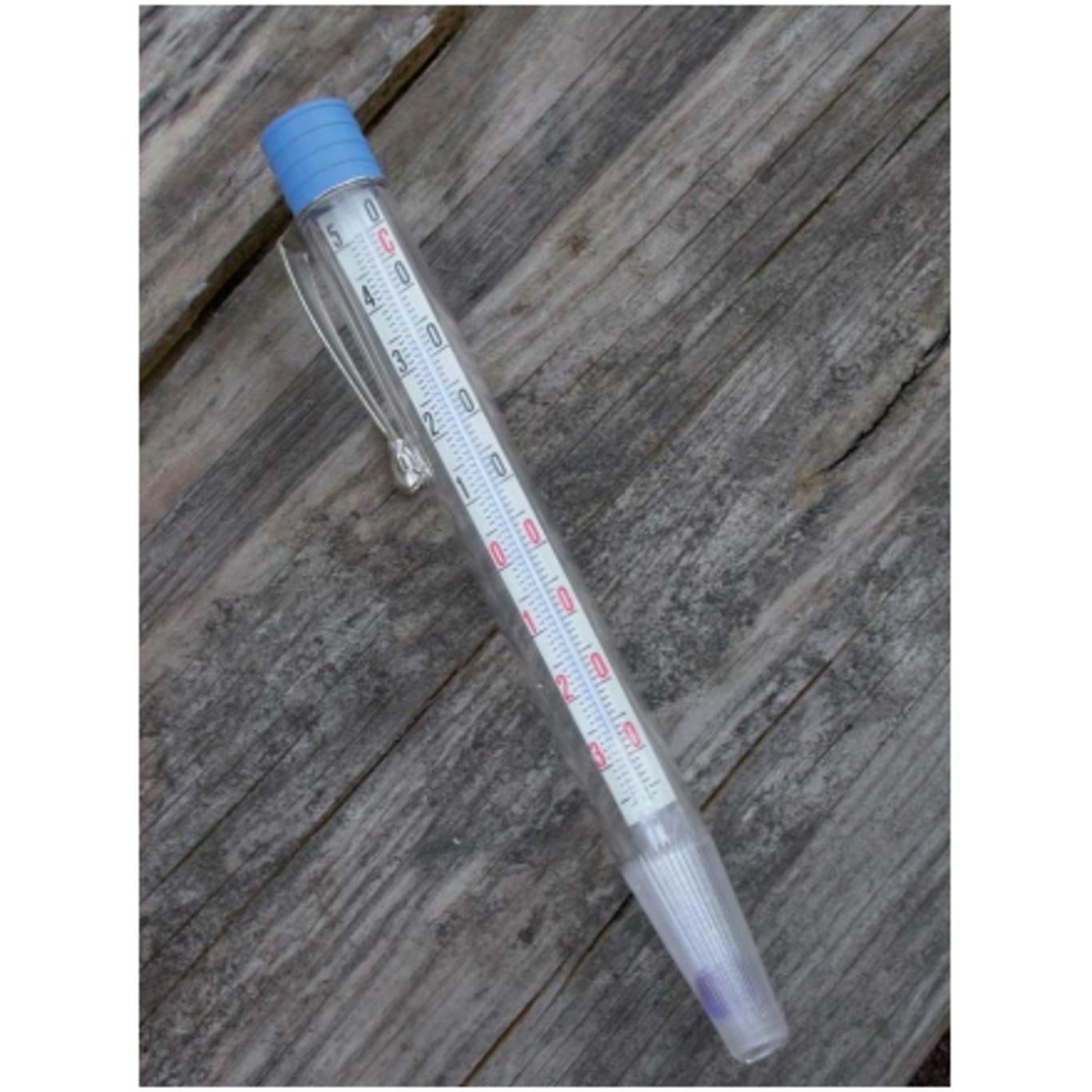 Enkelt termometer UDEN kviksølv, og med forstærkning, der beskytter termometret lidt bedre end traditionelle stavtermometre, og gør det egnet til fx feltarbejde. Måleområde: -30 °C til +50 °C med opløsning 1/1.