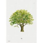 Retro litografi af egetræ trykt på kraftigt papir (karton) i A4 format.