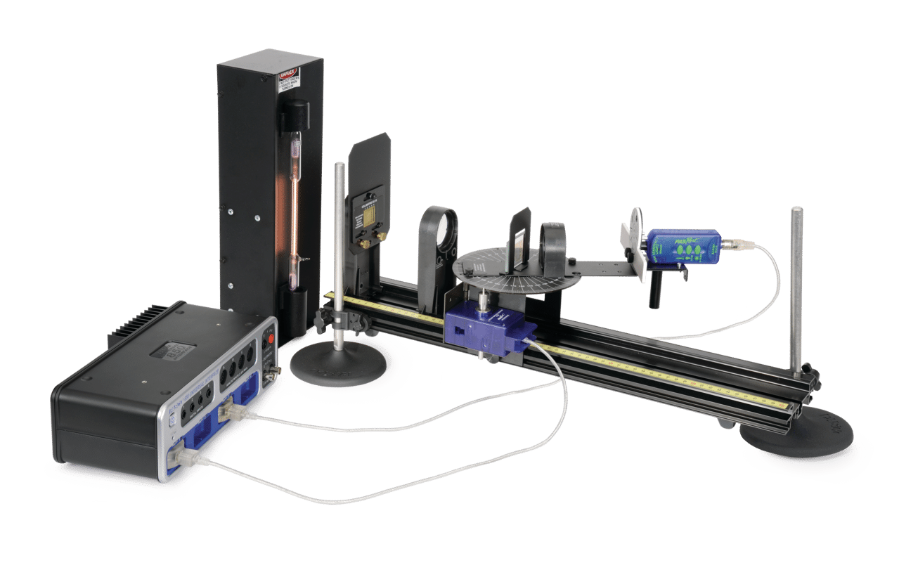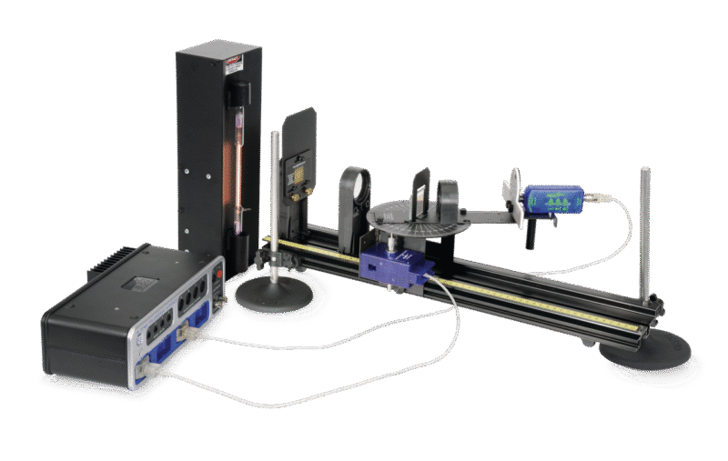 PASCO Advantage: Spektrofotometerets åbne konstruktion gør det muligt at se hele spektret, mens intensiteten i forhold til vinklen afbildes i realtid.