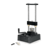 Materialetestmaskinen med håndsving giver eleverne mulighed for at mærke de forskellige kræfter, der skal til for at knække forskellige prøver.