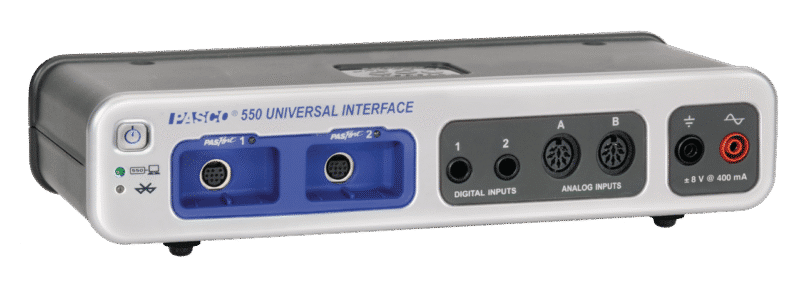 Universalinterfacet 550 er hurtigt, kraftfuldt og utroligt prisvenligt. Den omkostningseffektive 550 har halvt så mange porte og mange af de samme funktioner som vores 850 Universal Interface, herunder både Bluetooth- og USB-forbindelse. 550 Universal Interface indeholder to PASPORT-sensorporte, to digitale sensorporte, to analoge sensorporte og en indbygget signalgenerator.